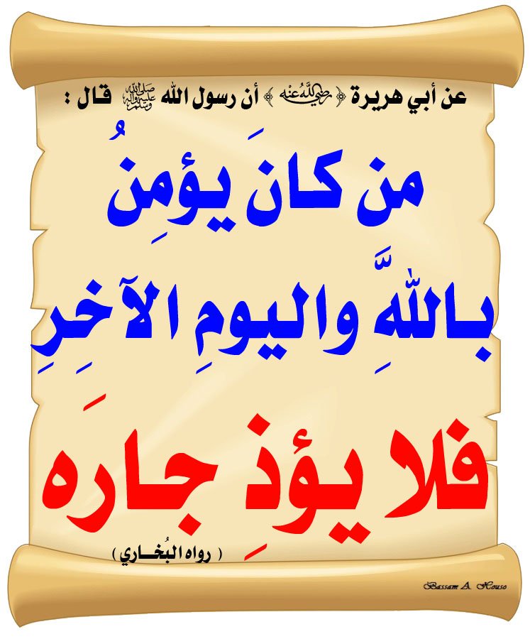 م ن ك ان ي ؤ م ن ب الل ه و ال ي و م ال آخ ر ف ل ا ي ؤذ ج ار ه موقع نصرة محمد رسول الله