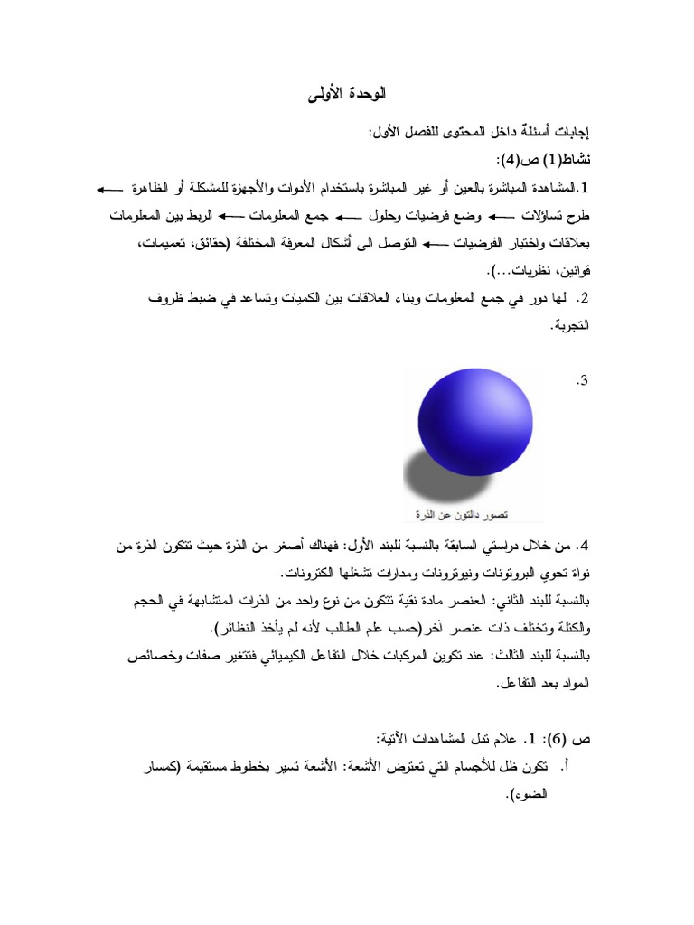 حلول أسئلة وأنشطة كتاب الكيمياء للصف العاشر