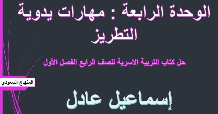 حل كتاب التربية الاسرية رابع ف1 الوحدة الرابعة مهارات يدوية التطريز