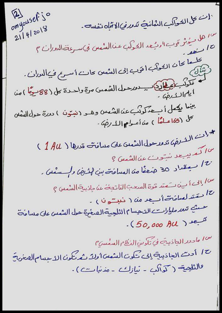 حل النظام الشمسي كتاب النشاط علوم الصف السادس مدرستي الامارتية
