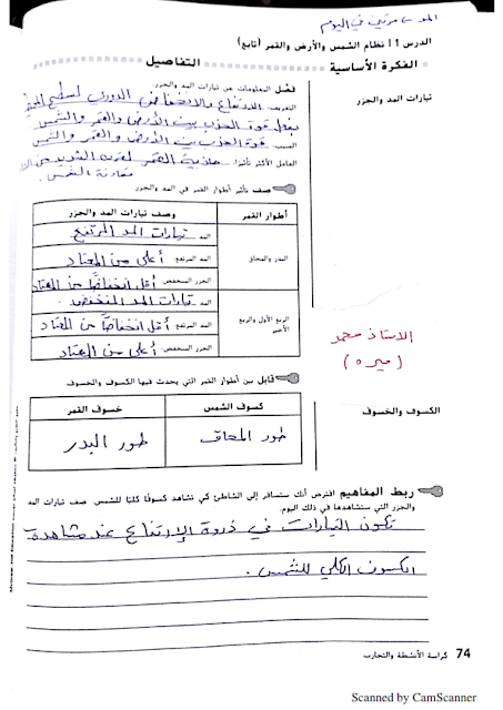 كتاب النشاط درس نظام الشمس والقمر والارض في العلوم للصف السادس الفصل الثالث العلوم والتكنولوجيا
