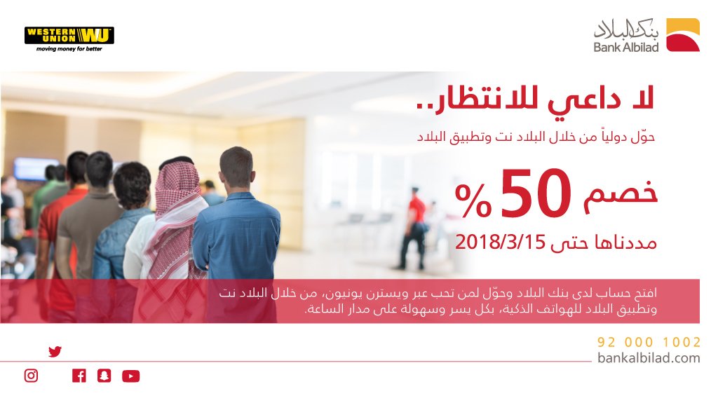 بنك البلاد Bank Albilad On Twitter وعليكم السلام وقت التحويل من يوم الاحد وحتى يوم الخميس من 9 صباحا إلى الساعة 3 55 عصرا واذا تم التحويل بعد الساعه 3 55 عصرا