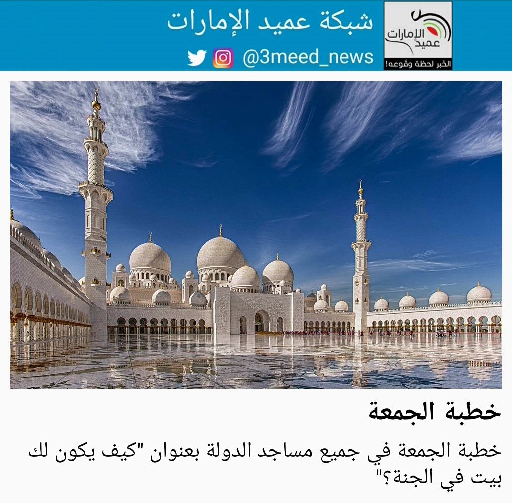 شبكة عميد الإمارات On Twitter خطبة الجمعة في جميع مساجد الدولة بعنوان كيف يكون لك بيت في الجنة