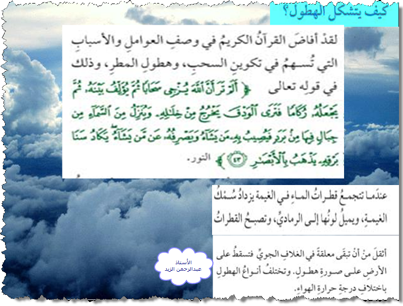 درس الغيوم والهطول للصف الخامس الابتدائي بستان السعودية