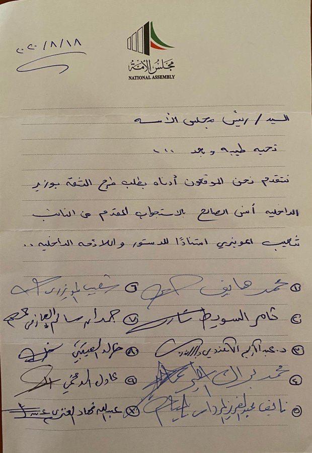 الرئيس الغانم يعلن عن تقديم 10 نواب طلب طرح الثقة بوزير الداخلية انس الصالح Q8 Press
