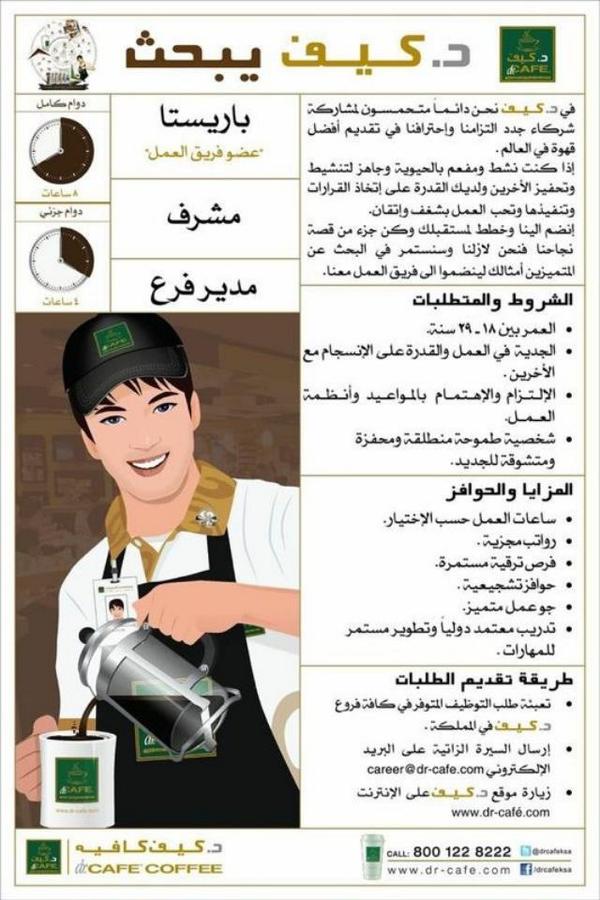 Dr Cafe د كيف En Twitter فرص وظيفية رائعة و فريدة و ممتعة التفاصيل في جميع فروع د كيف Http T Co Ifjmva6g2u