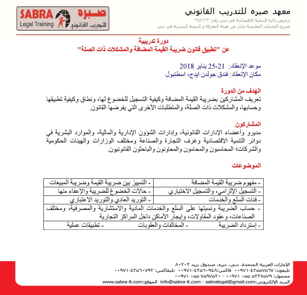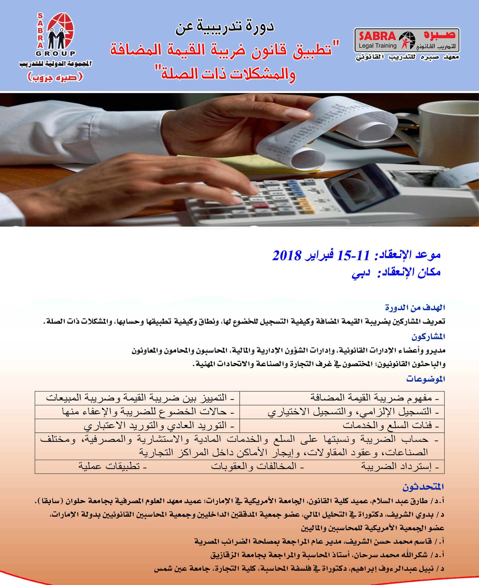 Sabra Legal Training On Twitter دورة تدريبية عن تطبيق قانون ضريبة القيمة المضافة والمشكلات ذات الصلة 11 15 فبراير 2018 دبي Https T Co Xt5gemt1xz Https T Co Rwpclry6hh