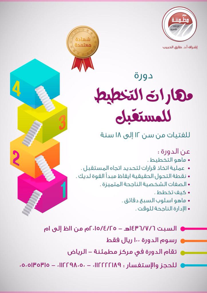 دورات مطمئنة En Twitter للفتيات حق بالتميز والصعود للقمة المستقبل مطمئنة تقدم لهم دورة مهارات التخطيط للمستقبل Http T Co Pzlun9fhzi