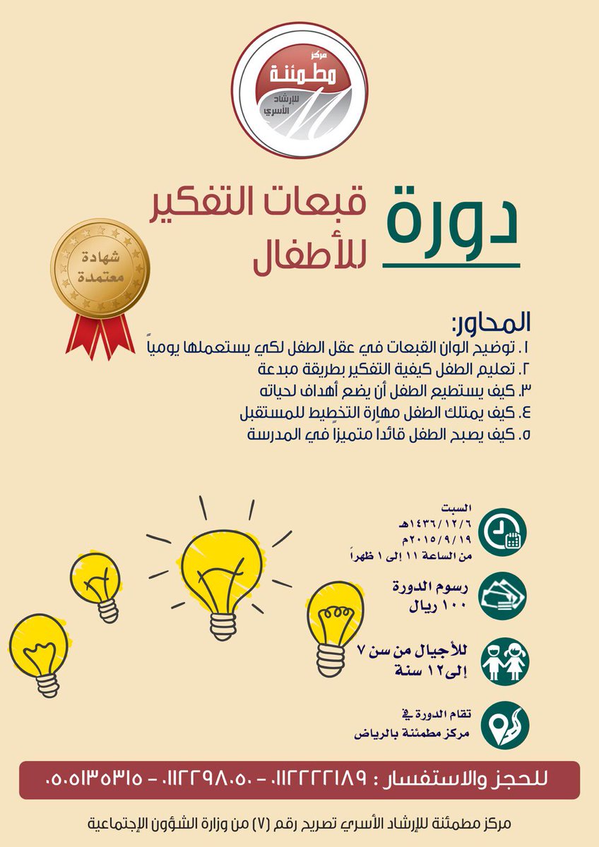 دورات مطمئنة Twitterren تقام في مطمئنة دورة قبعات التفكير للأطفال تعرف طفلك كيف يمتلك مهارات التخطيط للمستقبل للتسجيل 0112222189