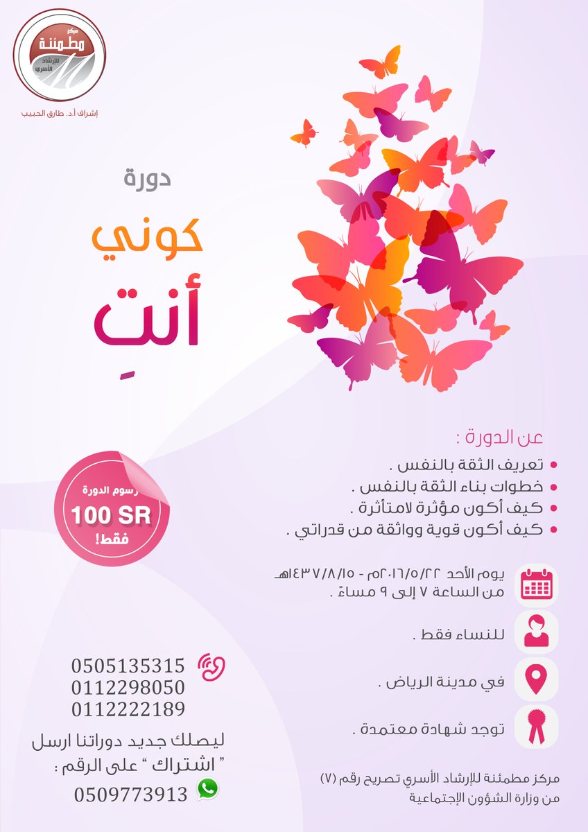 مركز مطمئنة On Twitter كيف أكون مؤثرة لامتأثرة تتعلمها من خلال دورة كوني أنتي للنساء فقط تقام في مطمئنة الرياض اليوم الاثنين Https T Co Eooyj0m54v