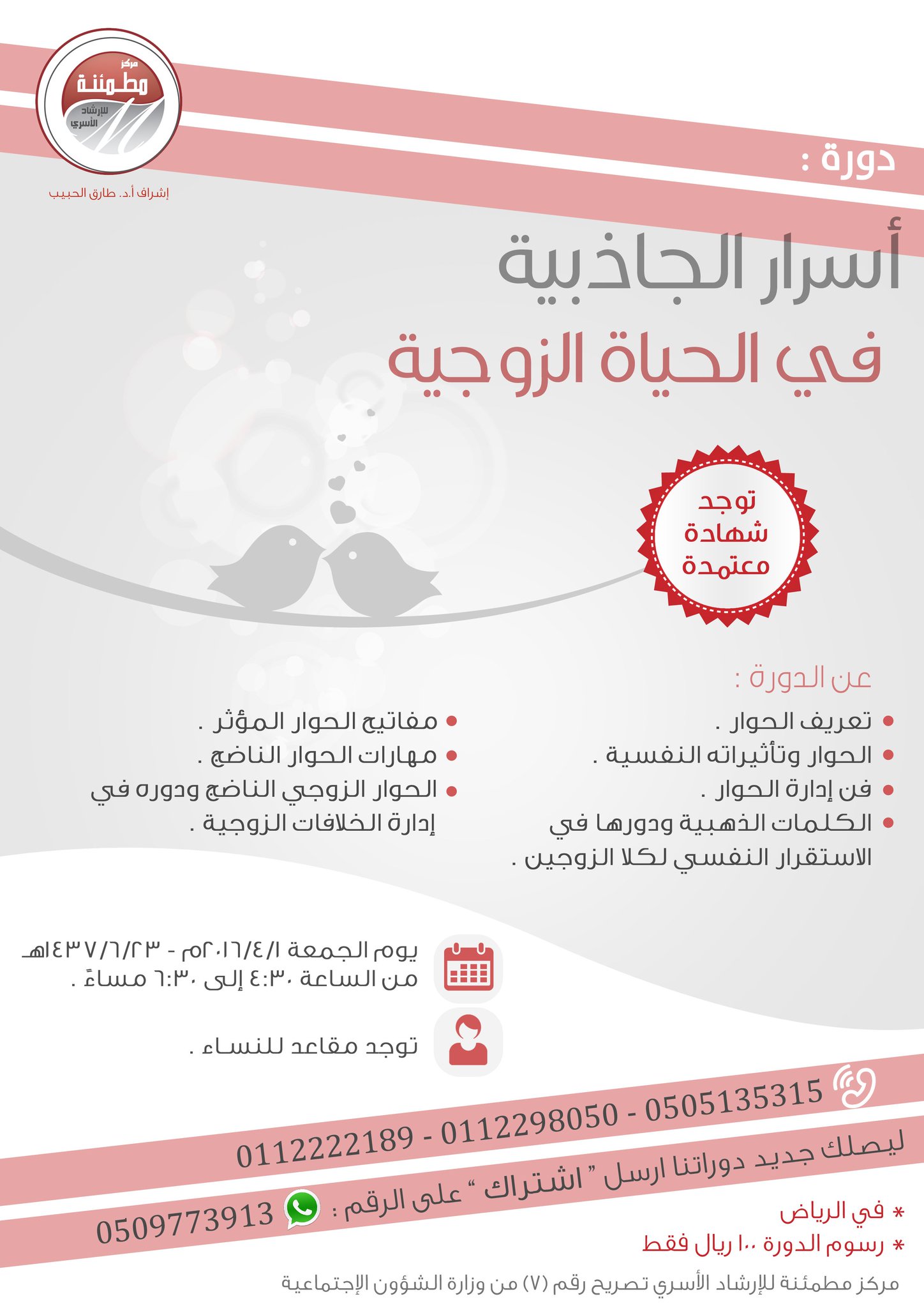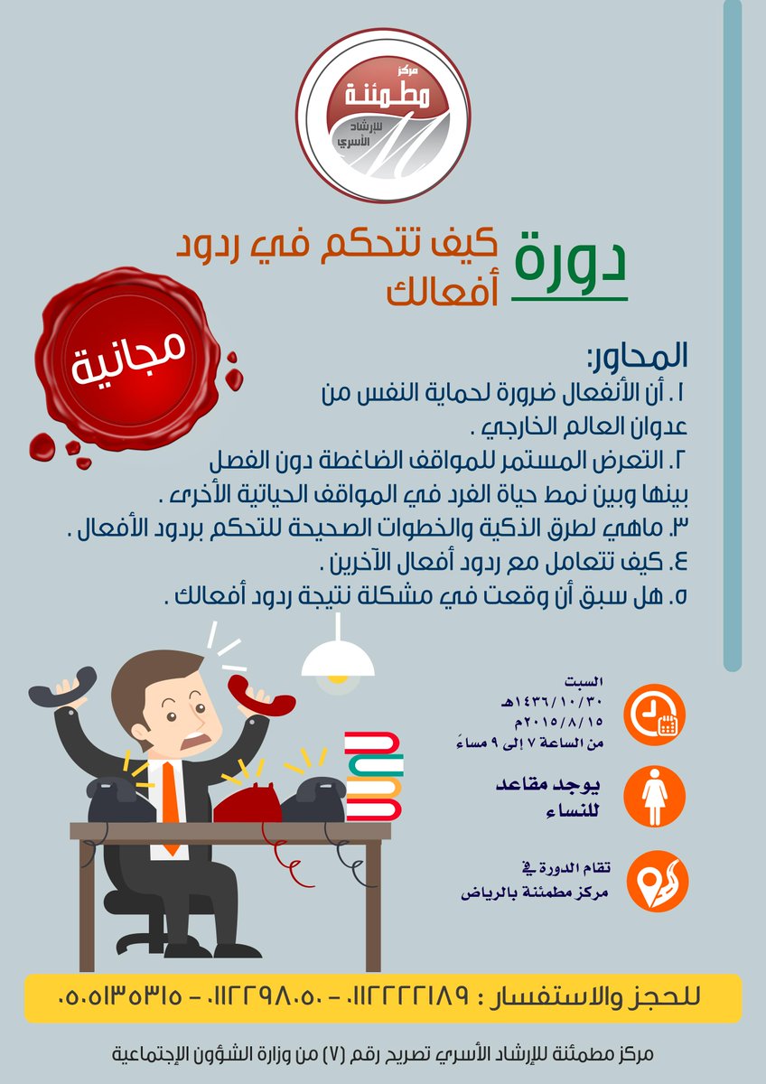 مركز مطمئنة בטוויטר مطمئنة الرياض تقدم دورة أسرار الجاذبية في الحوارات الزوجية و دورة كيف تتحكم في ردود أفعالك Https T Co Ah2dwfjz9q