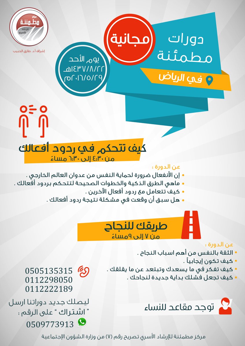 دورات مطمئنة בטוויטר شاركونا يوم السبت دورة كيف تتحكم في ردود أفعالك و دورة اتخاذ القرار