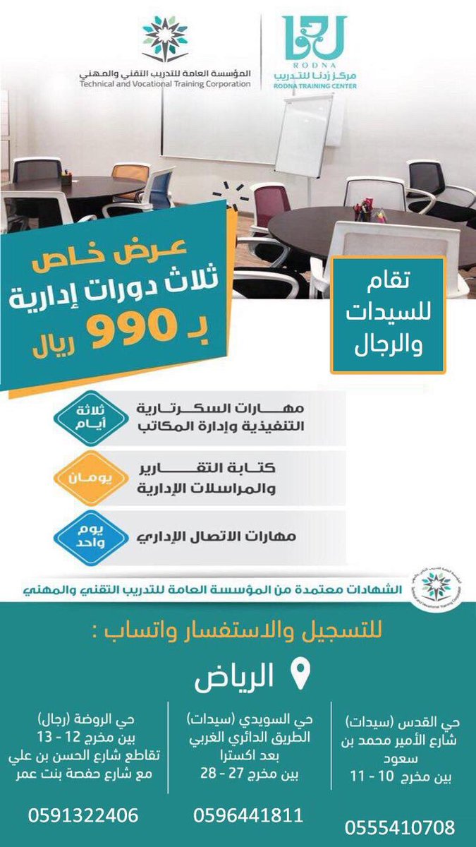 مركز ر دنا للتدريب على تويتر مركز ر دنا للتدريب يقدم ثلاث دورات إدارية لدعم السيرة الذاتية السكرتارية التنفيذية و إدارة المكاتب كتابة التقارير والمراسلات الإدارية مهارات الاتصال الإداري بسعر ٩٩٠ ريال السيدات القدس