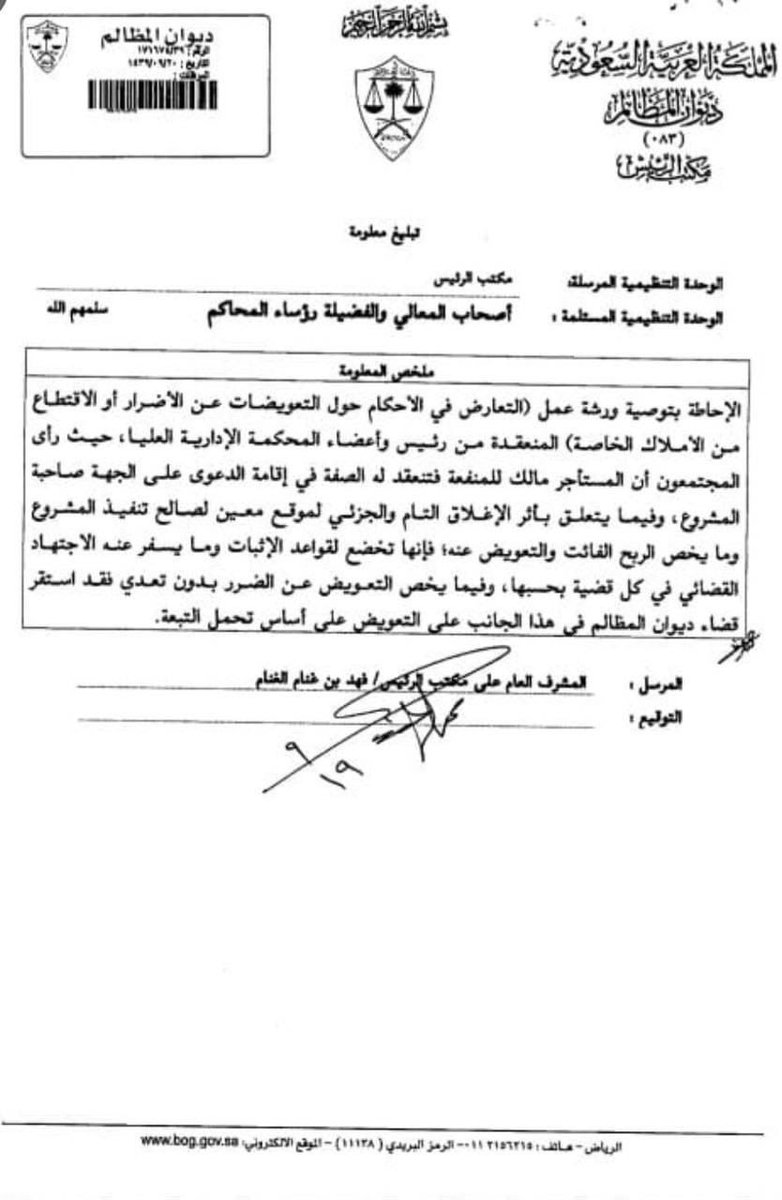 م إبراهيم الصحن On Twitter توصية مهمة من ديوان المظالم بخصوص الضرر الواقع على المستأجر بسبب المشاريع التي عرقلت عمله ويبقى التحدي الكبير كيفية إثبات الضرر وفوات الربح بسبب المشروع وهذا يحتاج إلى