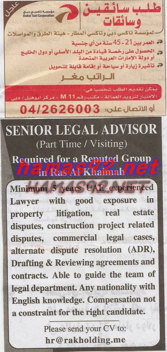 وظائف جريدة الخليج الاحد 12 10 2014 وظائف شاغرة فى الامارات