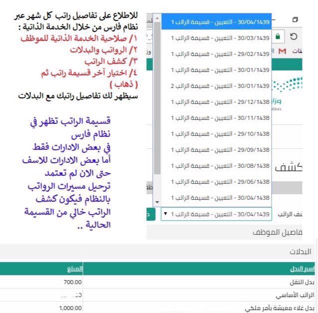 المعلمون والمعلمات V Twitter معرفة تفاصيل الراتب في نظام فارس وما يطرأ عليه من خصومات وبدلات من خلال أيقونة كشف الراتب شهريا ١ صلاحية الخدمة الذاتية ٢ الرواتب والبدلات ٣ كشف الراتب ٤ آخر قسيمة راتب Https T Co Nuby9sue9c