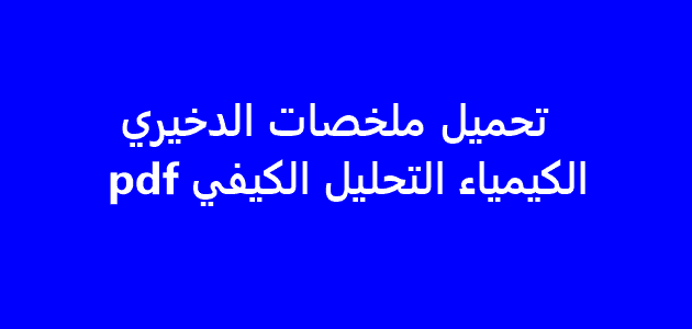 تحميل ملخصات الدخيري الكيمياء التحليل الكيفي Pdf