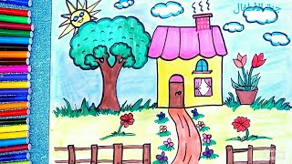 رسم بيت وحديقة وتلوينها للاطفال رائع جداا رسم منزل وشجر وورد للأطفال والمبتدئين بسهوله خطوة بخطوة Youtube