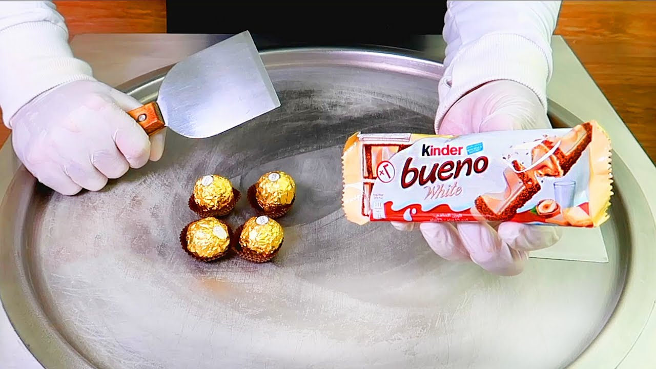 اكلات الشوارع حول العالم ايس كريم على الصاج بكيندر بوينو مع تقيمي للطعم Kinder Bueno Youtube