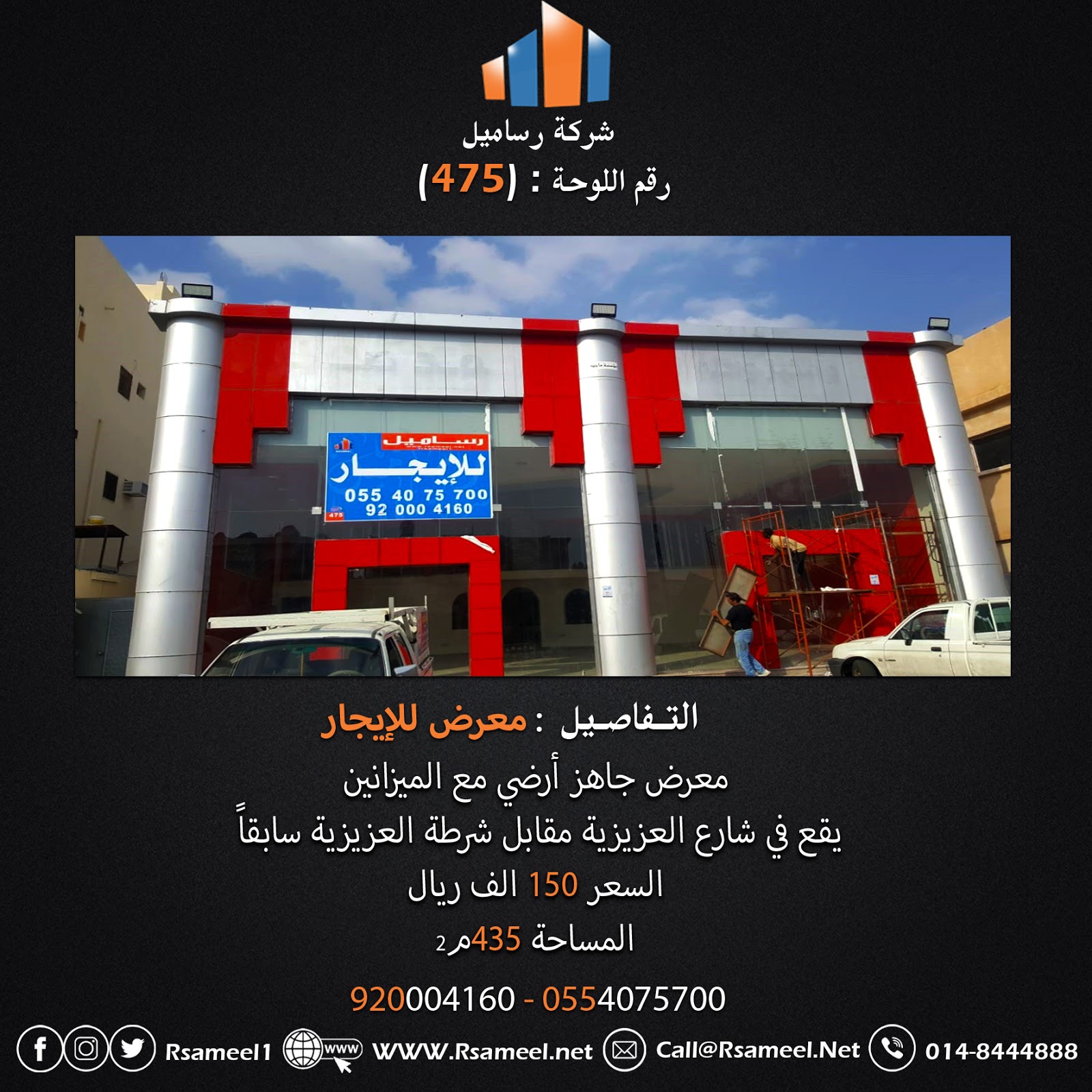 رقم اللوحة 475 معرض للإيجار في المدينة المنورة شارع العزيزية شركة رساميل Rsameel Company