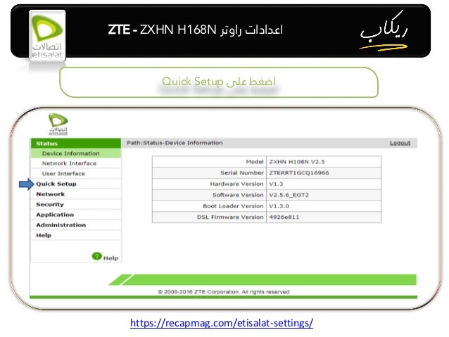 Zte H108 اعدادات راوتر اتصالات