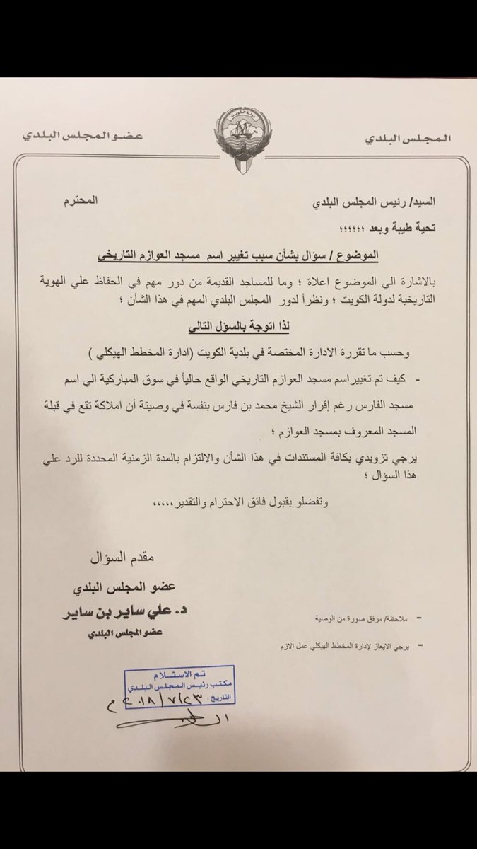د علي ساير بن ساير On Twitter سمو رئيس مجلس الوزراء Kuwaiticm يجب عليكم إيقاف تعمد بعض الجهات طمس تاريخ قبيلة العوازم من خلال تغيير أسماء بعض الأماكن التاريخية مثل مسجد و خباري