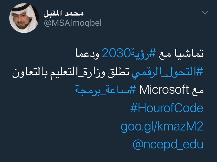عبدالمحسن الزهراني On Twitter كيفية المشاركة ساعة البرمجة السعودية تبرمج أولا سجل في مجتمع مايكروسوفت التعليمي كمعلم ثم عليك اجتياز دورة فعالية ساعة البرمجة Hour Of Code واخذ الاختبار للحصول على