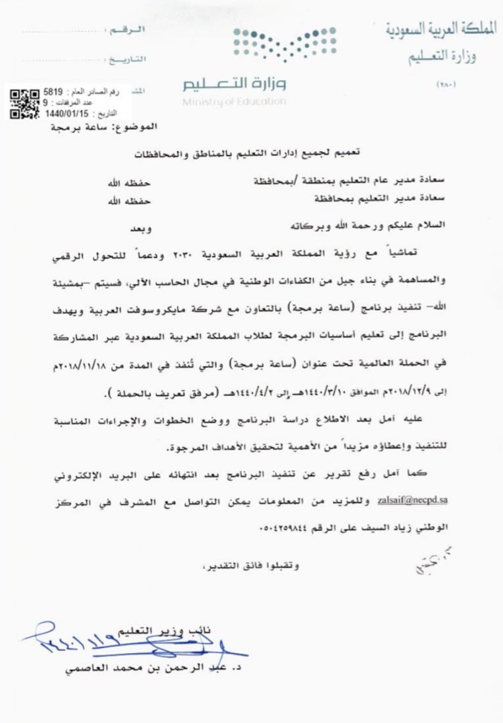 تطلق وزارة التعليم ساعة برمجة باالتعاون مع مايكروسوفت