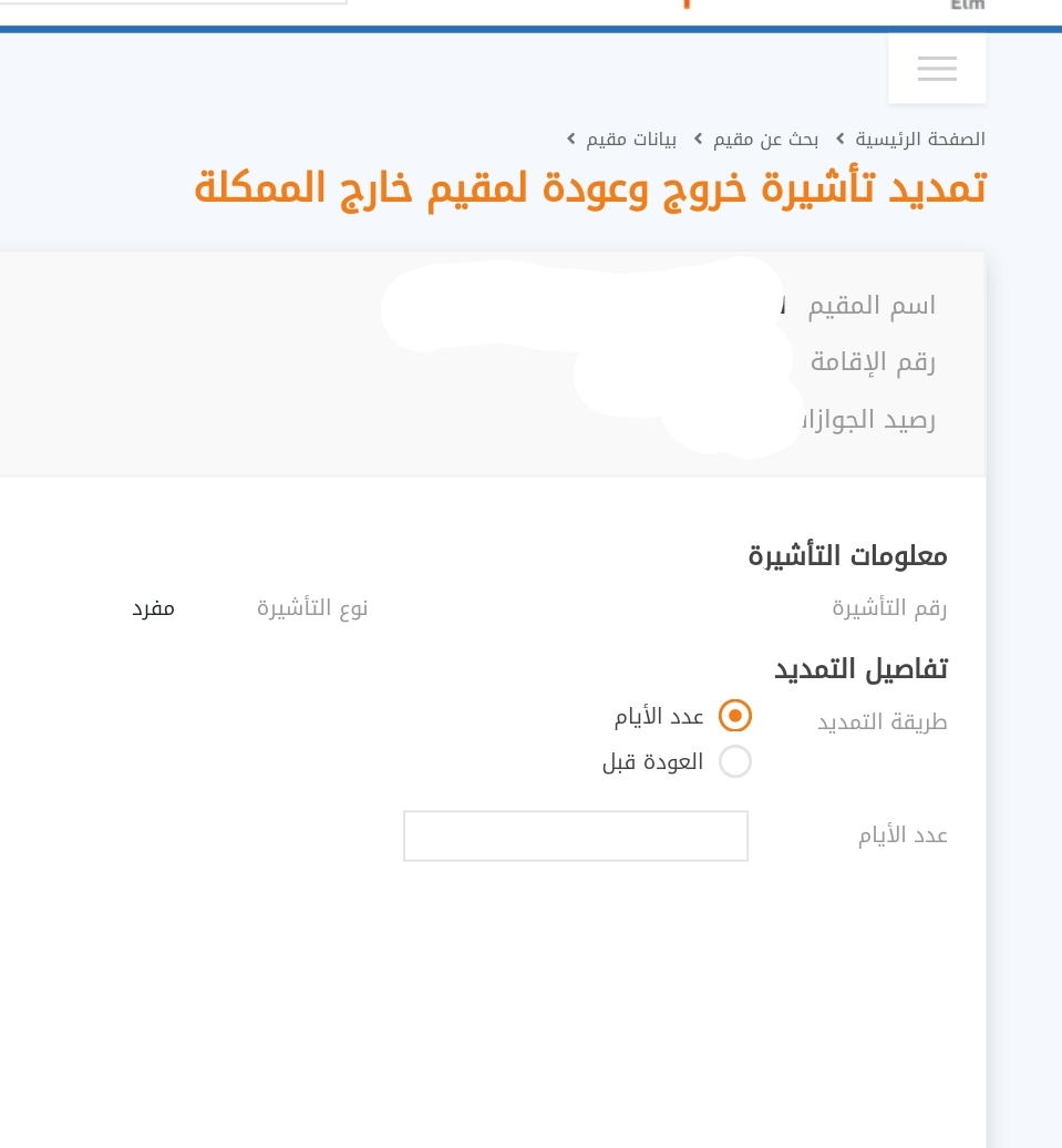 خدماتي الإلكترونية على تويتر طريقة تمديد تأشيرة الخروج والعودة من مقيم 1 الدخول لادارة المقيمين 2 بحث عن مقيم عرض 3 التأشيرات عرض 4 تمديد تأشيرة 5 اختيار طريقة التمديد العودة قبل او