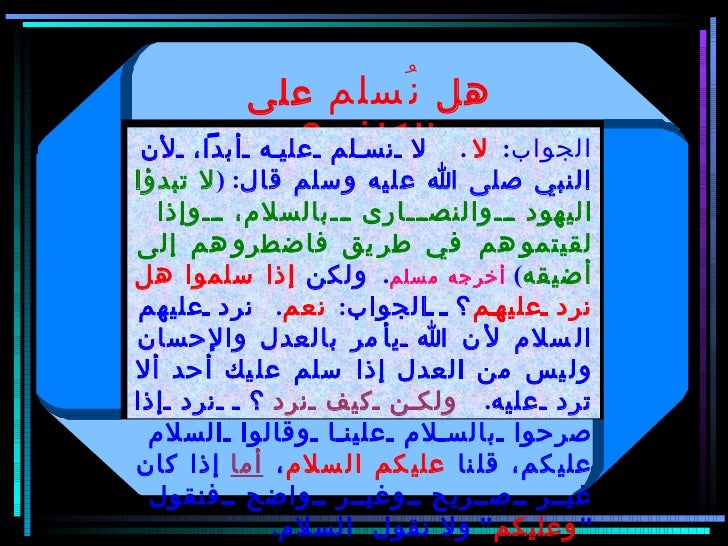 شرح حديث لا تبدؤوا اليهود ولا النصارى بالسلام مدونة فذكر