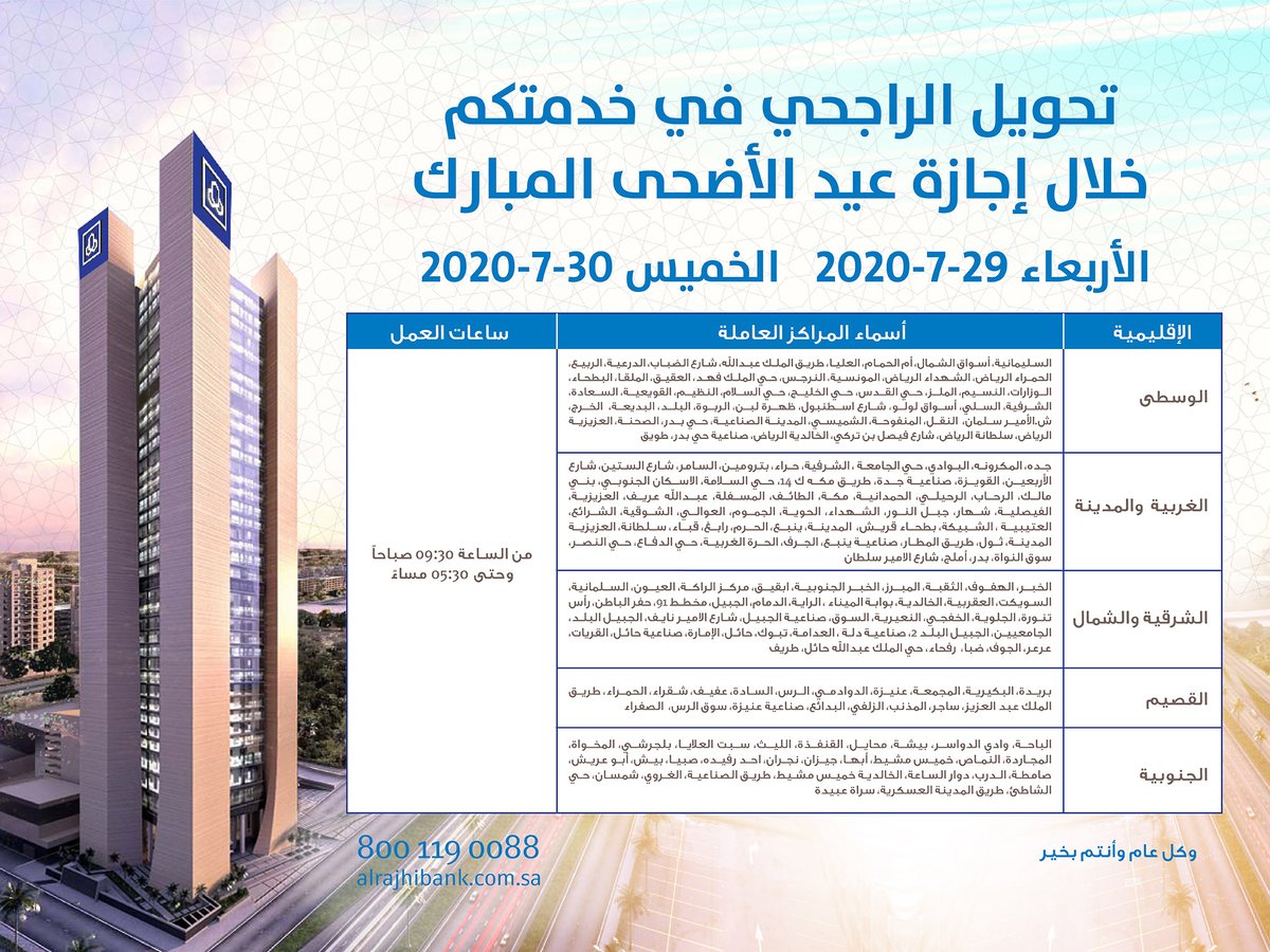تحويل الراجحي Pa Twitter تحويل الراجحي في خدمتكم خلال إجازة عيد الأضحى المبارك يومي الأربعاء 29 يوليو والخميس 30 يوليو تحويل يهتم