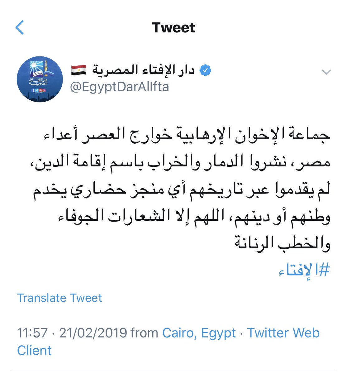 Mahmoud Refaat A Twitter تغريدات دار الإفتاء المصرية اليوم التي تهدر فيها دم الإخوان أتت بنفس صيغ ذباب سعود القحطاني بسباب الناس الزج بالمؤسسة الدينية بهذا الجرم هدم متعمد لمصر وأجيالها القادمة سوف أنقلها