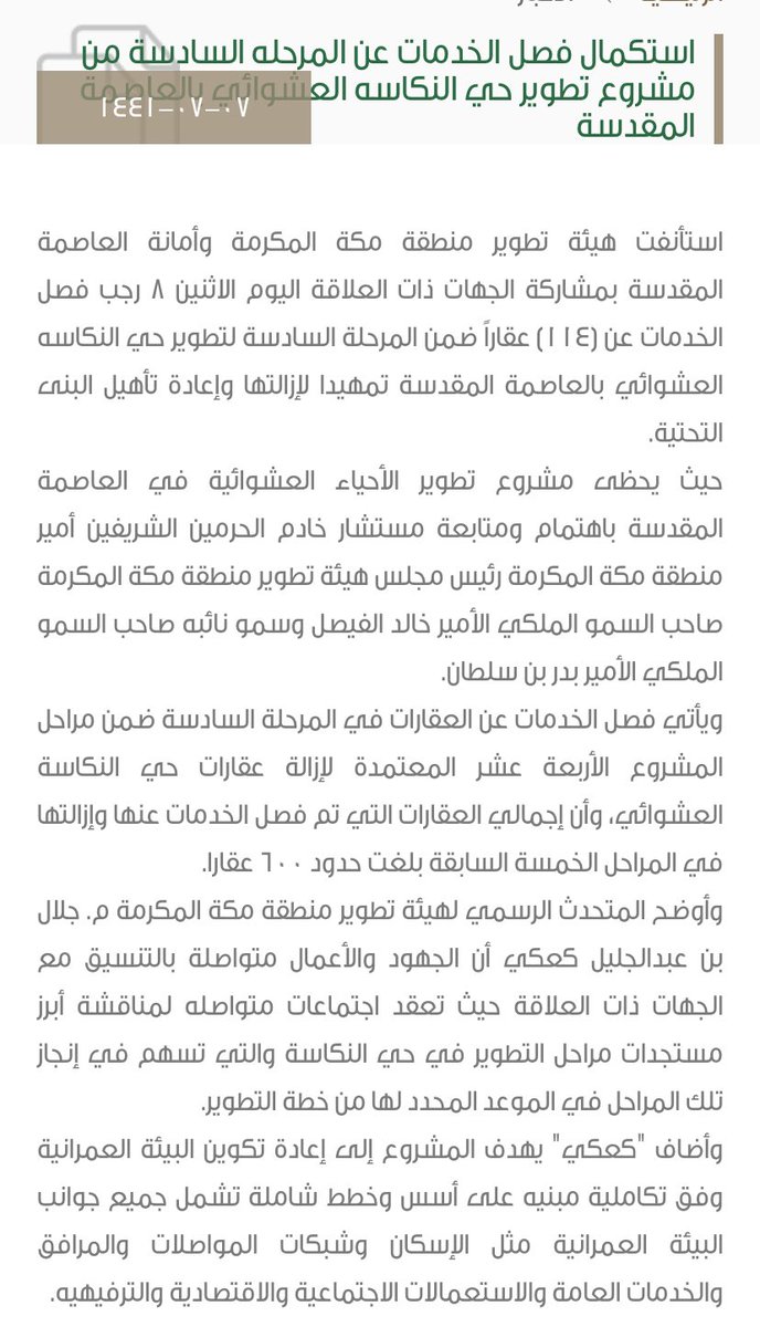 وش سالفة الهاشتاق على تويتر حي النكاسه هيئة تطوير منطقة مكة وأمانة العاصمة المقدسة يستكملان فصل الخدمات عن 114 عقار ا ضمن المرحلة السادسة من مشروع تطوير حي النكاسة العشوائي بمكة المكرمة Https T Co Bcsedlqrdy