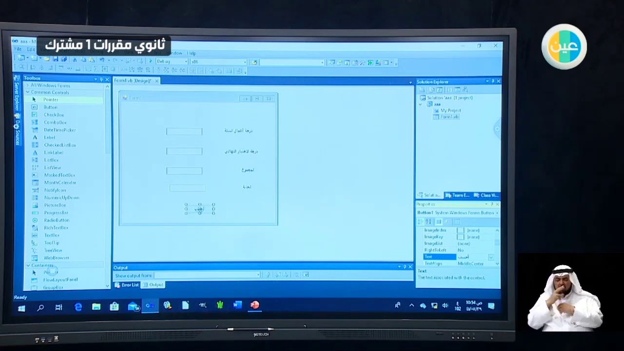 دروس عين تدريب برنامج فيجول بيسك ستوديو الحاسب 1 مقررات أول ثانوي مشترك 1 Youtube