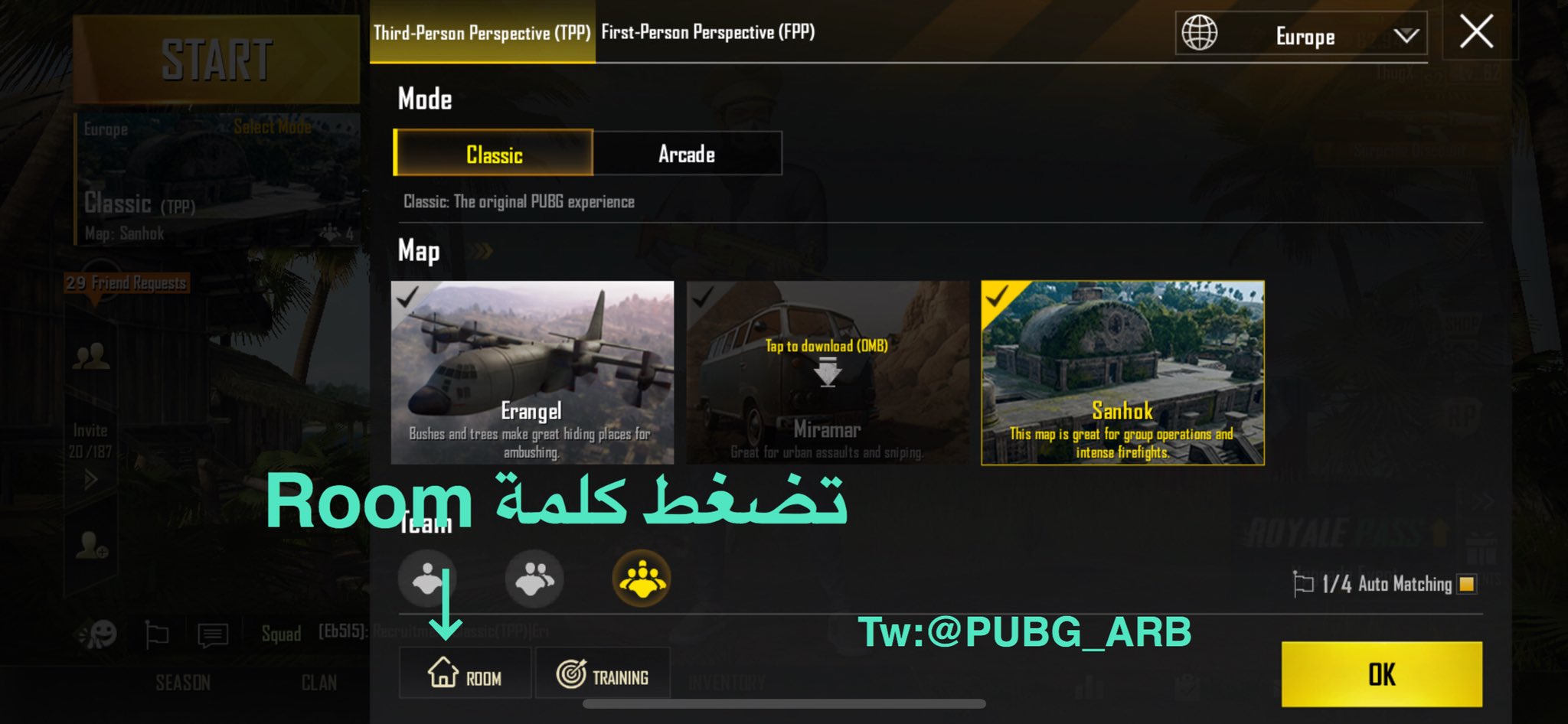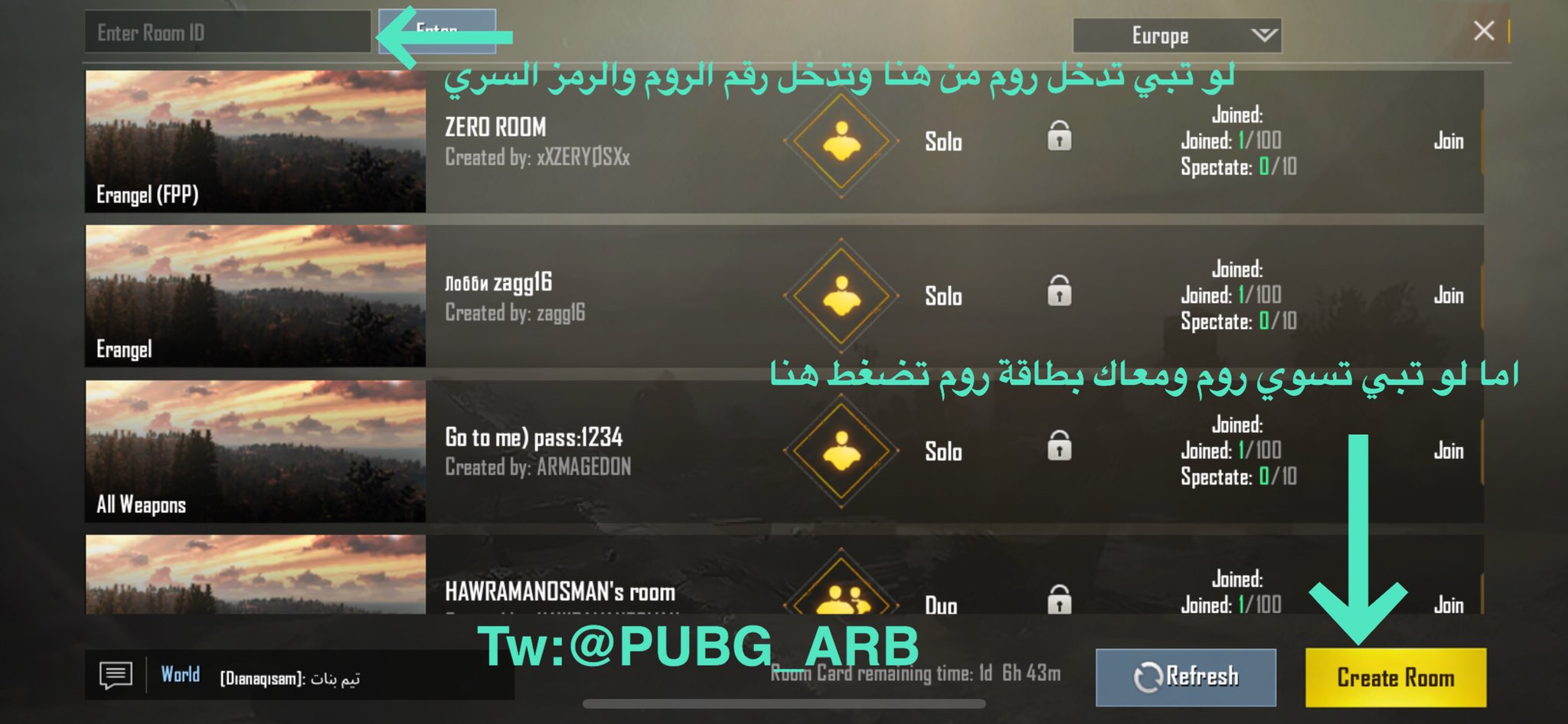 ببجي بالعربية V Twitter الروم هو سيرفر تقدر تلعب مع او ضد ناس تعرفهم وماعلية اي تقييم يعني للمتعة في التغريدة شرح لطريقة انشاء روم و طريقة الدخول في الروم Pubg ببجي